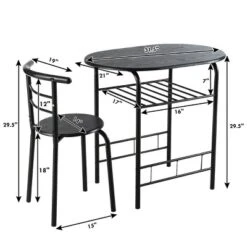 Tangkula 3 Pieces Counter Height Table Set 2 Chairs Bar Dining Room Faux Marble