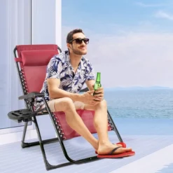 Tangkula Oversized Zero Gravity Lounge Chair Folding Recliner W/ Cup Holder & Pillow, Red