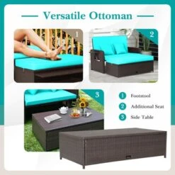 Tangkula Rattan Loveseat Set Daybed Lounge Storage Ottoman Side Tables Adjust Patio