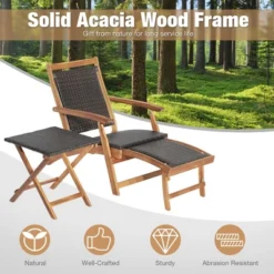 Tangkula 3-Piece Patio Lounge Chair Set with Folding Side Table & Ottoman