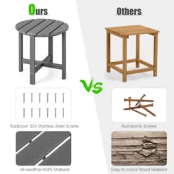 Tangkula 18″ Round Adirondack Side Table – Weather Resistant HDPE Outdoor End Table