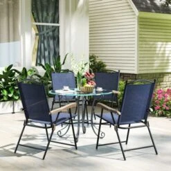 Tangkula Patio Folding Chairs Set Of 2 Outdoor Dining Chairs W/ Ergonomic Backrests & Armrests
