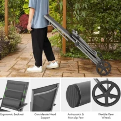 Tangkula Patio Recliner Chair: 7-Level Adjustable Folding Outdoor Chaise Lounge with Wheels