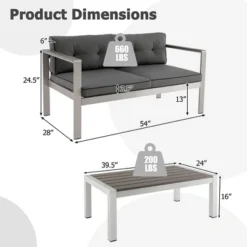 Tangkula 2 Pieces Outdoor Aluminum Loveseat & Coffee Table Set W/ Cushions Patio Furniture Set
