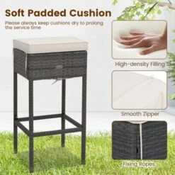 Tangkula 5PCS Patio Rattan Bar Table Stool Set Hidden Storage Shelf Cushion Red Patio Black