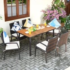 Tangkula 7-Piece Outdoor Rattan Dining Set with Acacia Wood Table
