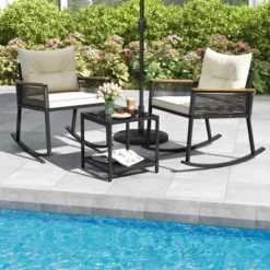 Tangkula 3-Piece Patio Rocking Bistro Set with 2-Tier Glass Side Table