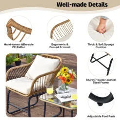 Tangkula 3-Piece Patio Rattan Furniture Set with Armchairs & Coffee Table