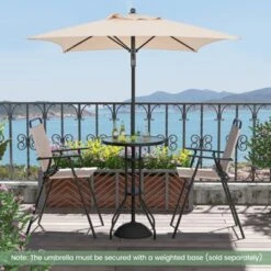 Tangkula 4PCS Bistro Set Folding Counter Height Chairs Round Bar Table & Umbrella Patio