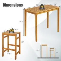 Tangkula 5 Pieces Patio Acacia Wood Bar Set Outdoor Bar Height Table & Saddle Stool Chairs Set