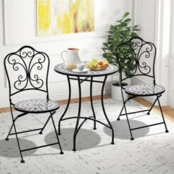 Tangkula 24″ Bistro Table W/ Ceramic Tile Tabletop Heavy-Duty Metal Structure Patio