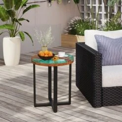 Tangkula 21″ Teak Wood End Table Outdoor Epoxy Resin Side Table W/ Irregular Tabletop