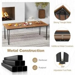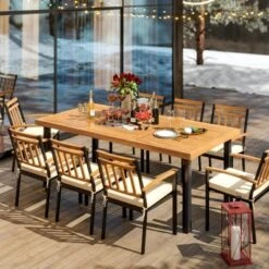 Tangkula 79″ Acacia Wood Dining Table for 8, Large Rectangular Patio Table with Umbrella Hole