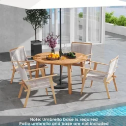 Tangkula Round Patio Dining Table Acacia Wood Outdoor Dining Table W/ 2″ Umbrella Hole
