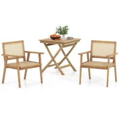 Tangkula Set Of 3 Outdoor Indonesia Teak Wood Bistro Dining Set Folding Chair & Table Slatted Patio