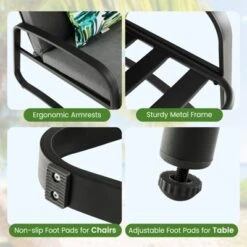 Tangkula Set Of 3 Bistro Conversation Set DPC Tabletop Metal Cushioned Chairs Patio