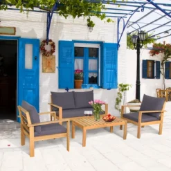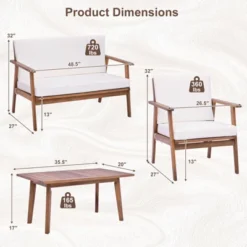 Tangkula 8PCS Conversation Set Acacia Wood Sofa Coffee Table W/ Cushioned Seat Patio