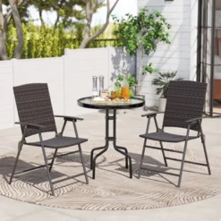 Tangkula Outdoor Folding Chairs Set Of 2 W/ Armrests & Metal Frame Portable Lawn Chairs