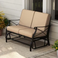 Tangkula 2-Person Outdoor Glider Chair Patio Rocking Lounge Chair W/ Breathable Fabric