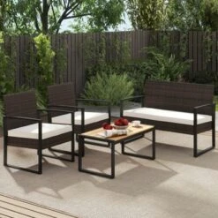 Tangkula Set Of 4 Patio Furniture Set W/Washable Cushions & Tempered Glass Coffee Table