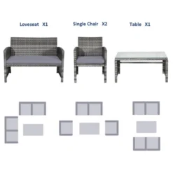 Tangkula Set Of 4 Rattan Furniture Set Sofa Ottoman Cushion Garden Deck Patio Black