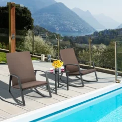 Tangkula 3PCS Rattan Rocking Chair Bistro Set Armrest Cushion Table W/ Storage Shelf Patio