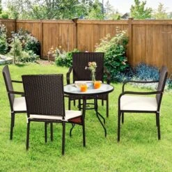 Tangkula 4 Piece Outdoor Patio Rattan Furniture Set Navy Cushioned Seat For Garden, Porch, Lawn