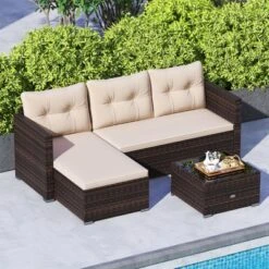 Tangkula 4 Seats Outdoor Patio Furniture Set L-Shaped Couch Set For Yard