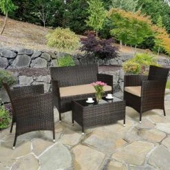 Tangkula 4-Piece Patio Rattan Wicker Conversation Furniture Set