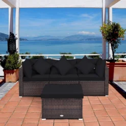 Tangkula 4PCS Rattan Patio Conversation Furniture Set Yard Outdoor W/ Black Cushion