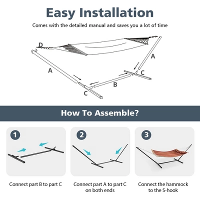 - Included Accessories: 1 x Hammock Stand, 1 x Storage Bag, 2 x Adjustable Chains
