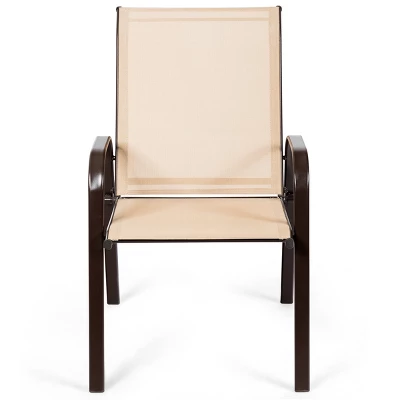 Our outdoor chair is made of premium fabric which is breathable, will not let you feel muggy even on a hot summer day. Curved armrests at both sides take the pressure off your shoulders and arms to relax totally. And the high back can well support your spine in correct posture. These 2 arm chairs are designed in a compact size which will save plenty of space for storage. What’s more, this chair has a light weight, making it very easy to carry everywhere. When you need chairs for outdoor activities, this patio chair set is a great choice for you!