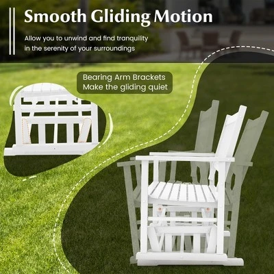 - Smooth Gliding Motion: This outdoor glider bench allows you to unwind and find tranquility in the serenity of your surroundings by gently swinging back and forth. And the bearing arm brackets make the gliding quiet.