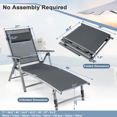 - Package Includes: 2 x Chaise Lounges, 2 x Headrest Pillows, 1 x Instruction Manual
