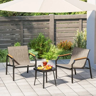 Elevate your backyard or balcony with the Tangkula 3-piece outdoor furniture collection. Designed for those who value both style and durability, this bistro set provides a sophisticated setting for morning coffees or evening sunsets. Featuring high-grade metal construction and breathable materials, it seamlessly blends modern aesthetics with the long-lasting resilience required for outdoor living.