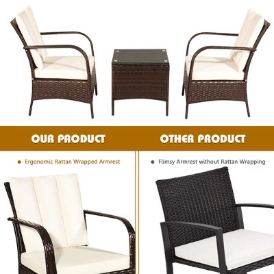 Elevate your backyard or balcony with the Tangkula 3-Piece Rattan Conversation Set. Designed for those who value both style and relaxation, this official Tangkula collection offers a sophisticated seating solution that blends seamlessly into any outdoor environment. Whether you are sipping morning coffee or enjoying an evening sunset, this premium wicker set provides the perfect foundation for a comfortable and inviting outdoor retreat.