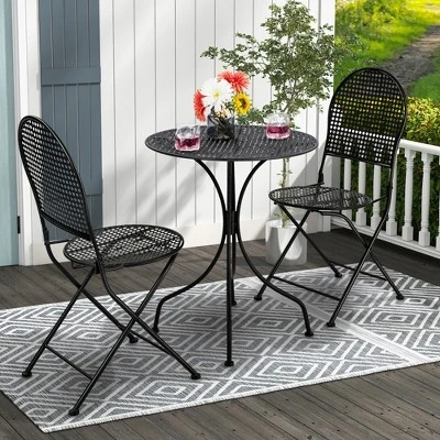 Experience the perfect blend of style and durability with the Tangkula 3-Piece Patio Bistro Set. Designed for those who value both comfort and functionality, this set provides an intimate dining experience for two. Whether you are sipping morning coffee on the porch or enjoying a sunset drink in the backyard, this robust metal set transforms any small space into a cozy retreat.