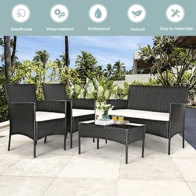 Transform your backyard or balcony into a luxury retreat with the Tangkula 4-Piece Rattan Patio Conversation Set. Designed by Tangkula to blend sophisticated aesthetics with rugged durability, this official collection piece offers a perfect setting for morning coffee or evening relaxation. Built with all-weather materials, it provides a stylish and comfortable environment for you and your guests to enjoy the outdoors year-round.