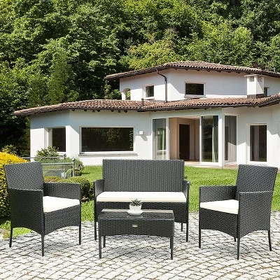 - Material: PE Rattan, Powder-Coated Steel, Tempered Glass, Polyester, Sponge