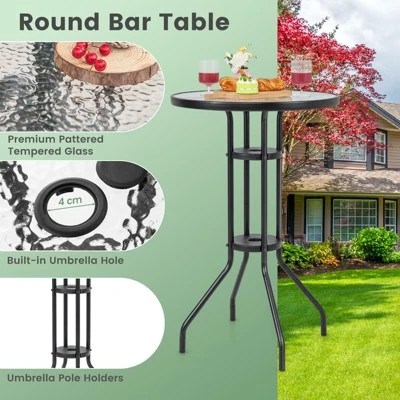 High-top bar table with 2 fixing brackets to secure the umbrella