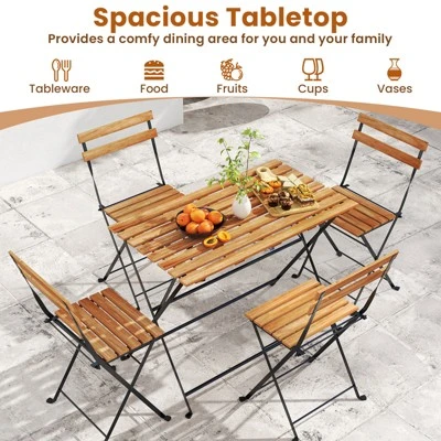 Experience the perfect blend of natural elegance and modern durability with the Tangkula 5-Piece Patio Dining Set. Whether you are enjoying a morning coffee on the balcony or hosting an intimate dinner in the garden, this set provides a sophisticated and functional solution for any space. Crafted with premium materials and a focus on space-saving design, it seamlessly transitions between indoor charm and outdoor utility.