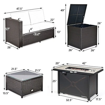 - Selected Materials: The sturdy and rustproof steel frame is wrapped by sun-protective mix brown PE rattan, which makes this patio conversation set withstand outdoor changing weather better. Meanwhile, the tabletop of the fire pit table is made of ceramic for fade resistance.