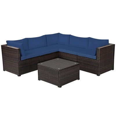 Enjoy leisure time with your friends and family by using this 6 pieces patio conversation set! This practical rattan furniture set includes a coffee table, 2 armless sofas and 3 corner sofas, which offer spacious space to eat food and chat together. And the sturdy structure holds up to 165 lbs for table and 360 lbs for each sofa. Besides, the heavy-duty steel frame and weatherproof rattan ensures this outdoor furniture set can be used for a long time. Additionally, the waterproof cover with zipper can be easily removed, which facilitates your cleaning and maintenance. You can use this dining table and chairs set in different places, such as patio, garden, backyard and poolside, etc.