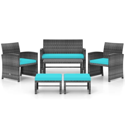 Transform your backyard into a luxury retreat with the Tangkula 6-piece outdoor furniture set. This premium wicker ensemble combines the sophisticated look of hand-woven PE rattan with the structural integrity of a heavy-duty metal frame. Designed for versatility, this set includes a loveseat, two armchairs, two multi-functional ottomans, and a tempered glass coffee table, providing the perfect configuration for everything from morning coffee to evening gatherings.