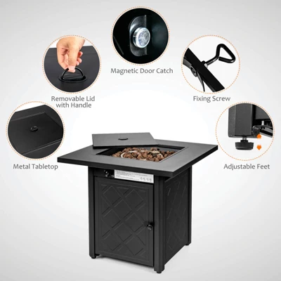 - Fire Pit Dimensions: 28″ x 28″ x 25.5″ (L x W x H)