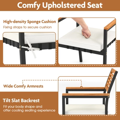 - Sturdy & Stable Structure: Made from sturdy metal frame with tight screw connection, this patio conversation furniture set is suitable for long-term use. Meanwhile, the non-slip foot pads and reinforced crossing bars ensure the set remains secure even during use.