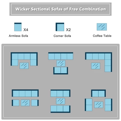 - Free Combination of Sectional Sofa: Comes with four armless sofas, two corner sofa and a coffee table, this patio furniture can flexible combination according to your needs and based on your room space. In addition, 10 clips secure the sofa firmly together to avoid sliding. The patio furniture set with ample seats allows you to relax with your friends.