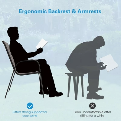 - High Back Chairs Set of 6: Each chair has cozy backrest and armrests for better support to your spine and arms. Moreover, the breathable and quick-drying fabric not only provides you with a cool experience on hot days, but also require low maintenance. And the stackable design takes up less space.