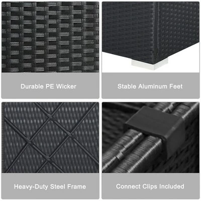 - 7 Piece Sectional Sofa Set: The patio sectional sofa set includes 4 armless sofas, 2 corner sofas and 1 coffee table, which provide plenty of seats for enjoying leisure time with your friends. Because the sofas are individual, you can you can freely combine them according to your needs. We prepare furniture clips to prevent your wicker furniture from sliding.