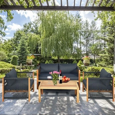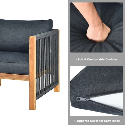 Elevate your outdoor living experience with the Tangkula 8-piece acacia wood furniture set. Designed to blend modern elegance with rustic charm, this expansive collection provides a sophisticated private corner for meaningful conversations, reading, or hosting family gatherings. Whether placed in a garden, patio, or poolside, this premium set transforms any space into a luxurious retreat.